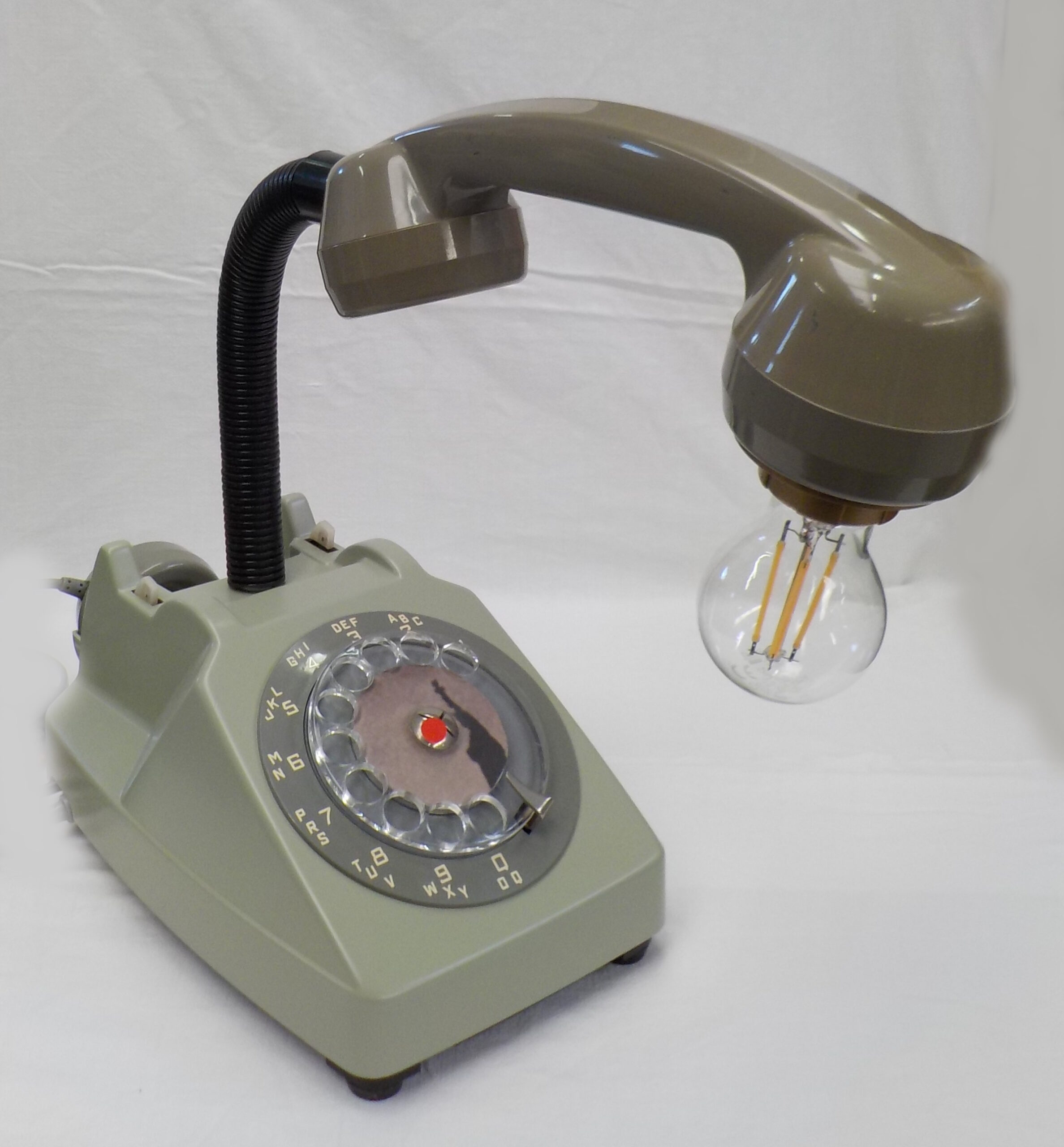 Ancien téléphone des années 70 transformé en lampe.